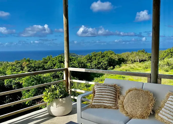 Situata a circa 25 minuti a piedi da Jardin des Cinq Sens, la Villa Shambhala - Vue Mer Panoramique Petit Brule invita gli ospiti a rilassarsi su una terrazza.